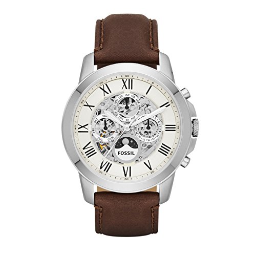 Fossil continues its reputation for quality with this definitive timepiece. This casual watch features a silver stainless-steel case and bold brown leather band that looks great for any occasion. The surface of the beige dial is protected by a Mineral crystal that reads very easily in many different light settings. Other features include luminous, water-resistant, and measures seconds.