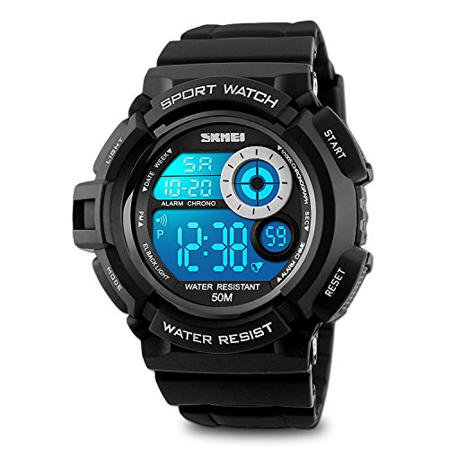 - DESIGN for SPORT: 50M 5ATM water resistant shock resistant, stop watch, military 24H time mode, and 7 color LED back light functions make it perfect for all kind of sport and daily use. It is also a great gift for family, friends and your kids.